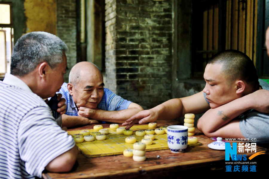 Tea drinkers play chess at Transportation Teahouse, Aug. 11, 2014. (Xinhua News Agency/Li Xiangbo)