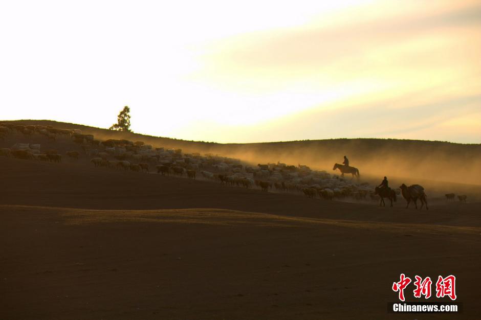 The nomads in Altay prefecture, northwest China's Xinjiang Uygur autonomous region, migrated to winter pasture with hundreds of thousands of cattle and sheep every September.(Chinanews.com/Liu Shihe)