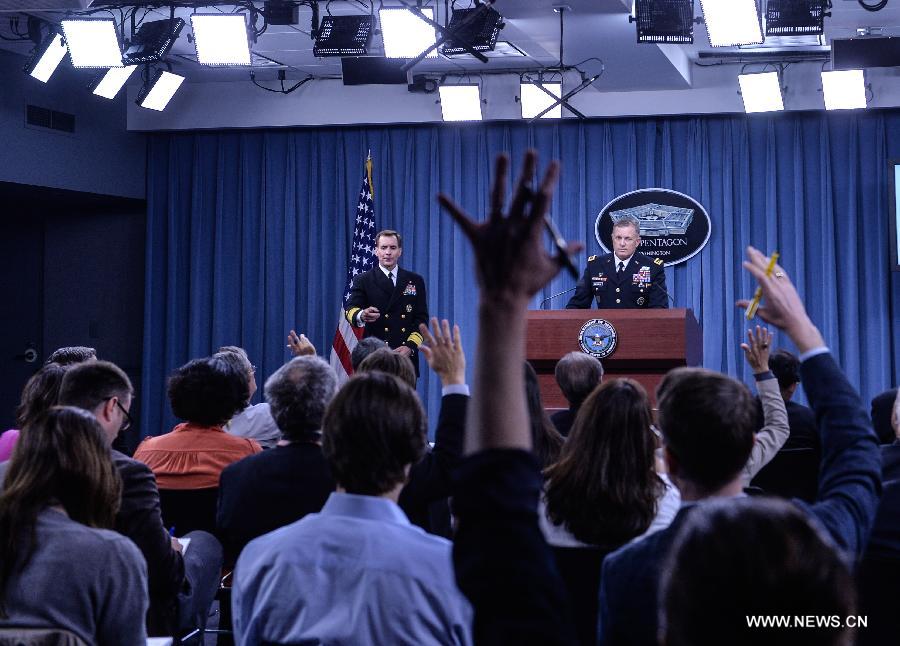 US Lieutenant General William Mayville briefs the press during a briefing at the Pentagon in Washington D.C., capital of the United States, Sept. 23, 2014. The airstrikes on the Islamic State (IS) targets in Syria overnight Monday were "only the beginning" of a coalition effort of the Unites States and its Arabic allies in the anti-IS fight, a Pentagon spokesman said Tuesday. Meanwhile, U.S. Lieutenant General William Mayville detailed the airstrikes, saying that the initial attack came in three waves. The first was launched from sea by cruise missiles followed by waves of U.S. and Arab bombers and fighters. (Xinhua/Bao Dandan)