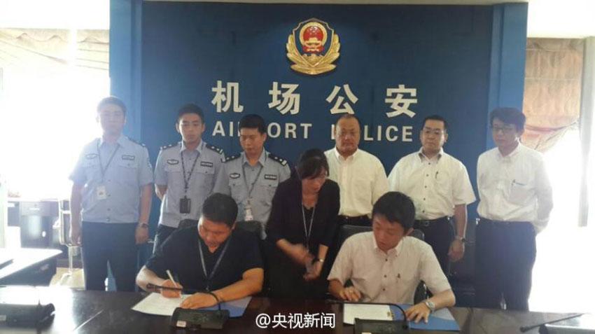 The two sides sign an agreement on handing over drug dealer Ryuji Hasegawa to Japanese police. [Photo: CCTV Weibo]