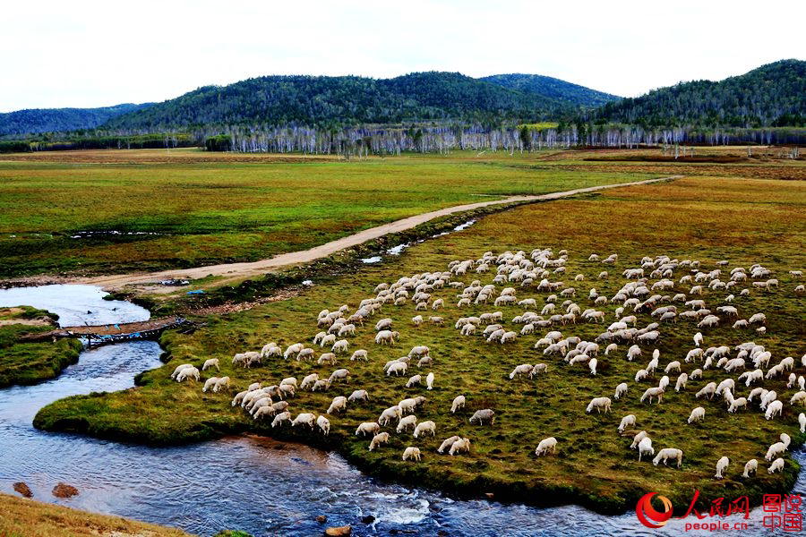 Located in Arun Banner, northeastern Inner Mongolia, Kulungou is full of scenic beauty with herds of cattle and flocks of sheep. (Photo/People's Daily Online)