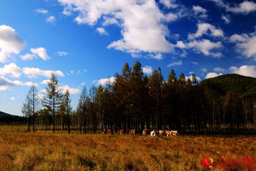 Located in Arun Banner, northeastern Inner Mongolia, Kulungou is full of scenic beauty with herds of cattle and flocks of sheep. (Photo/People's Daily Online)