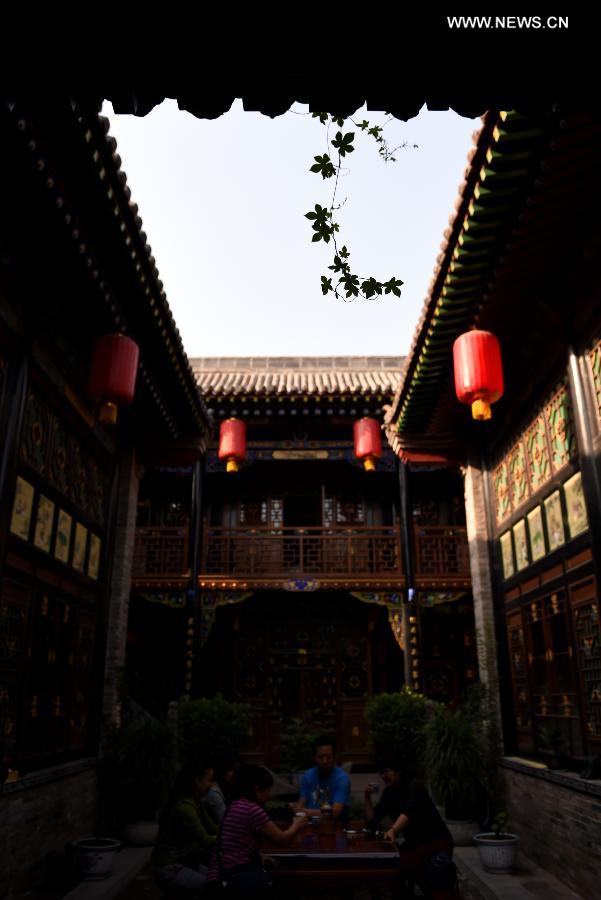 Tourists chat in a local inn in Pingyao County, north China's Shanxi Province, Sept. 19, 2014. Located in Jinzhong Basin of Shanxi Province, the 2700-year-old Pingyao Ancient Town is one of the most well-preserved ancient towns in China. Pingyao, which was added to the World Heritage List by UNESCO in 1997, attracts numerous tourists from all over the world. (Xinhua/Yan Yan)