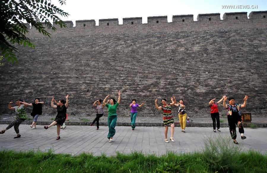 Residents dance in Pingyao Ancient Town, Pingyao County, north China's Shanxi Province, Aug. 1, 2014. Located in Jinzhong Basin of Shanxi Province, the 2700-year-old Pingyao Ancient Town is one of the most well-preserved ancient towns in China. Pingyao, which was added to the World Heritage List by UNESCO in 1997, attracts numerous tourists from all over the world. (Xinhua/Yan Yan)
