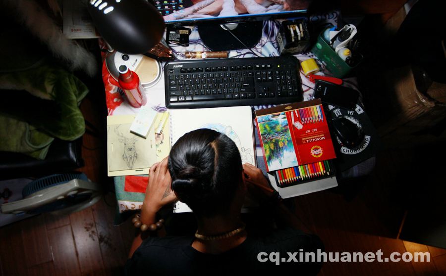 Pan's assistant creates his tattoo works on July 21, 2014. Compared to paintings, tattoo attaches more importance to uniqueness. So it has much higher requirement on the tattooists' painting skills and creative concepts. (Xinhua News Agency/Peng Bo)