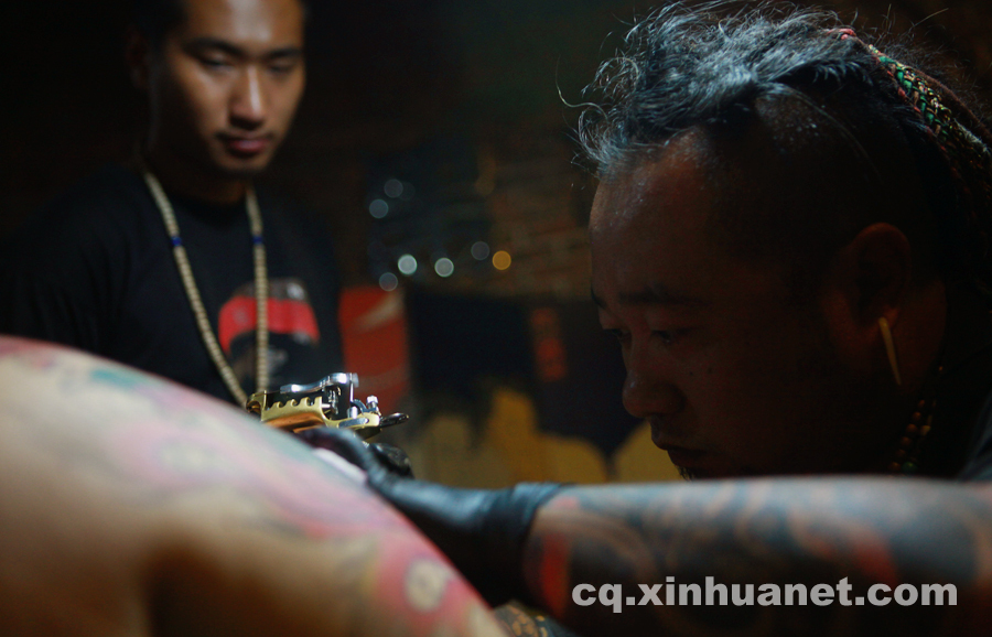 On July 21st, a costumer tattoos. (Xinhua News Agency/Peng Bo)