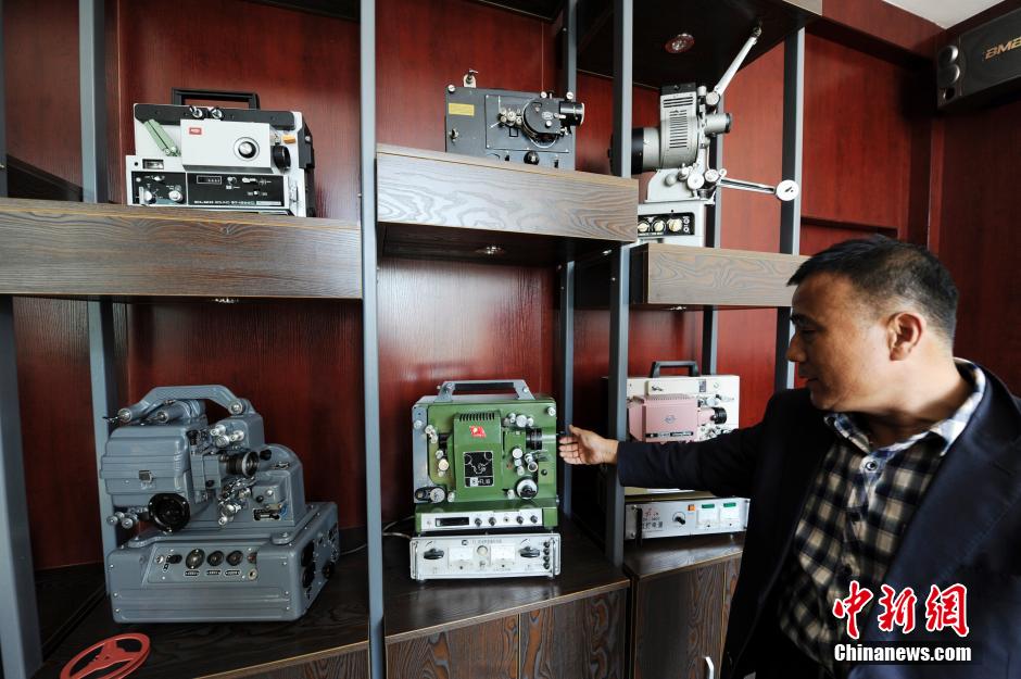 Started from 1999, Zhao Bingcheng began to collect different types of film projectors. Now his collection includes a Zeiss 16 mm bidentate silent film projector made in Germany, the first generation of model 54 16mm film projector made in 1956 by Nanjing Cine-Equipment Manufactory, and other 50 film projectors. Zhao Bingcheng says, he hopes to inherit the culture of motion pictures by collecting film projectors.