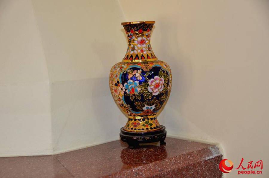 A ceramic vase from China is placed in the most prominent place inside the house. (Jia Xingpeng/People's Daily Online)
