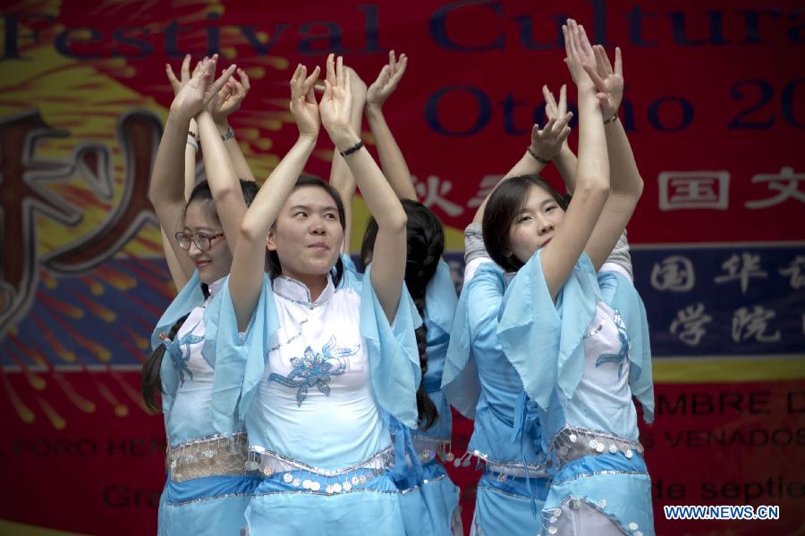 Chinese dancers perform during the 2014 Chinese Cultural Autumn Festival, in the framework of the Day of the Confucius Institute, in Mexico City, capital of Mexico, on Sept. 27, 2014. The Day of the Confucius Institute is celebrated worldwide on Sept. 27. (Xinhua/Alejandro Ayala)