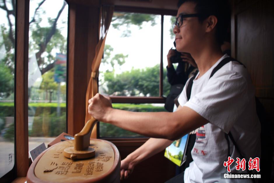 A tour bus which preserves the classic look of Dangdang trolley departs from a bus stop in Beijing, September 28, 2014. The new bus route came into service on Sunday, attracting many riders. (Photo: China News Service/Yang Yanyu)