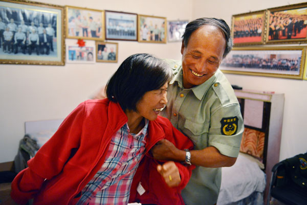 | Chen Jungui, who for decades has guarded the cemetery where his former team are buried, feels he owes much to his wife, Sun Liqin. Photo by HENG GUOLIANG |