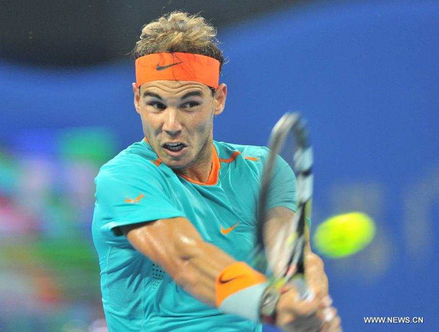Rafael Nadal of Spain returns the ball during the men's singles quarterfinal match against Martin Klizan of Slovakia at the China Open tennis tournament in Beijing, China, Oct. 3, 2014. Nadal lost 1-2. (Xinhua/Li Wen)