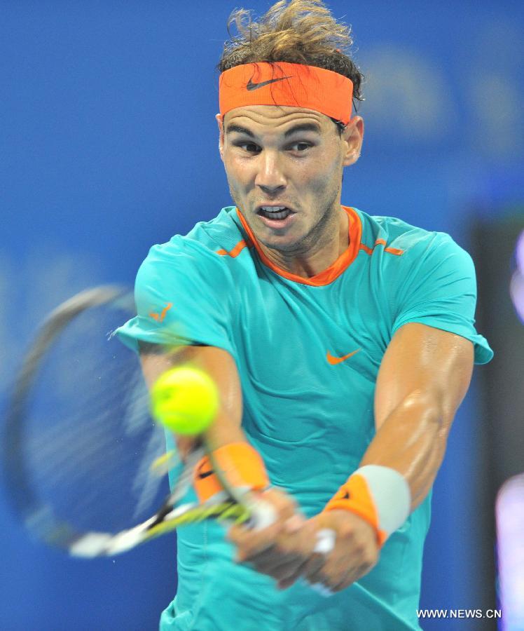 Rafael Nadal of Spain returns the ball during the men's singles quarterfinal match against Martin Klizan of Slovakia at the China Open tennis tournament in Beijing, China, Oct. 3, 2014. Nadal lost 1-2. (Xinhua/Li Wen)