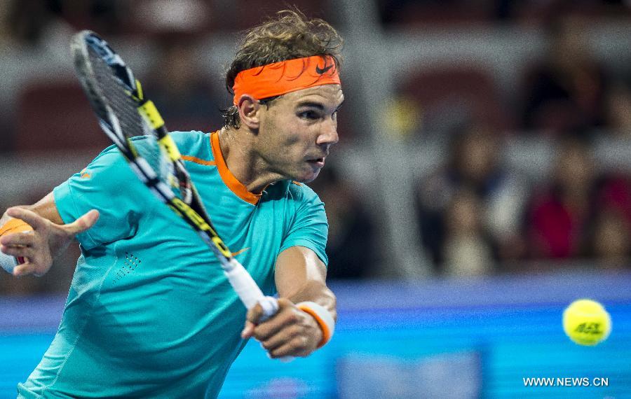 Rafael Nadal of Spain returns the ball during the men's singles quarterfinal match against Martin Klizan of Slovakia at the China Open tennis tournament in Beijing, China, Oct. 3, 2014. Nadal lost 1-2. (Xinhua/Zhang Yu)