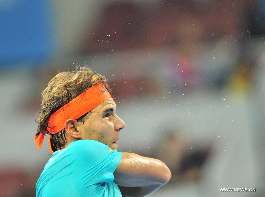 Rafael Nadal of Spain competes during the men's singles quarterfinal match against Martin Klizan of Slovakia at the China Open tennis tournament in Beijing, China, Oct. 3, 2014. Nadal lost 1-2. (Xinhua/Li Wen)