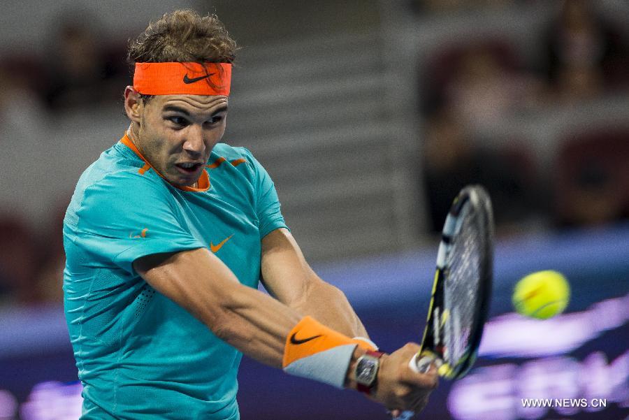Rafael Nadal of Spain returns the ball during the men's singles quarterfinal match against Martin Klizan of Slovakia at the China Open tennis tournament in Beijing, China, Oct. 3, 2014. Nadal lost 1-2. (Xinhua/Zhang Yu)