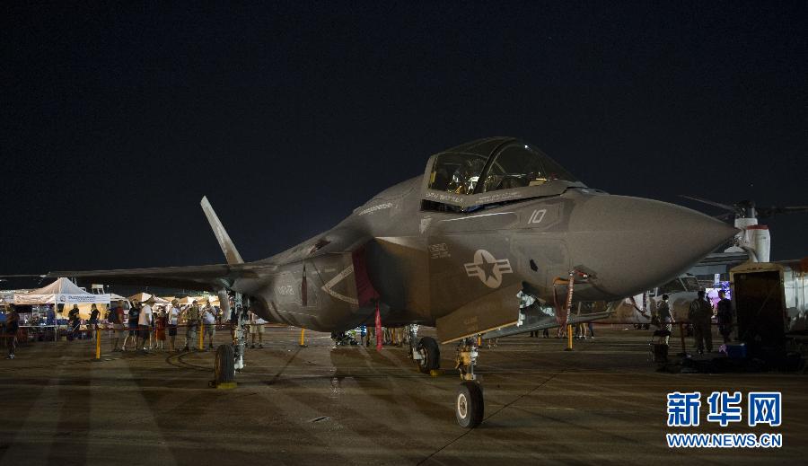 Visitors gather to look at the brand new F-35B Lightning stealth fighter plane during the Miramar Air Show in San Diego, California, the United States, on Oct. 4, 2014. The Marines demonstrate the new F-35B Joint Strike Fighter at this year's Miramar Air Show. The U.S. Navy "Blue Angeles" perform during the Miramar Air Show. (Xinhua/Yang Lei)