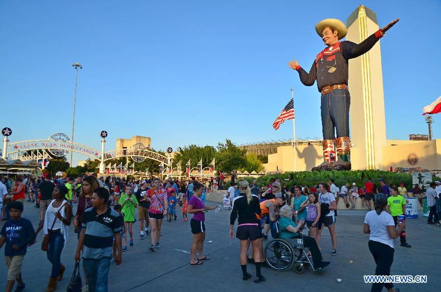 People attend an annual exposition of Texas at a park, several kilometers from the apartment where Thomas Eric Duncan, the first Ebola patient discovered in the United States, stayed in Dallas, the United States, on Oct. 6, 2014. (Xinhua/Xu Xun)