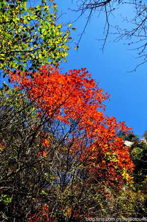 Two microblog users, one named "Hei Lao Tou" (or Black Old Man) on Sina.com and another "Zhou Qin Gu Li" (or Native Land of the Zhou and Qin Dynasties) on Fengniao.com, scaled Cuihua Mountain in late autumn to capture the beauty of autumn at Cuihua Mountain by camera, and so have brought enjoyment to all. The difference between the two's works is that one of them focused mainly on the colorful mountainous scenery while the other one favored the clear springs more than anything else.