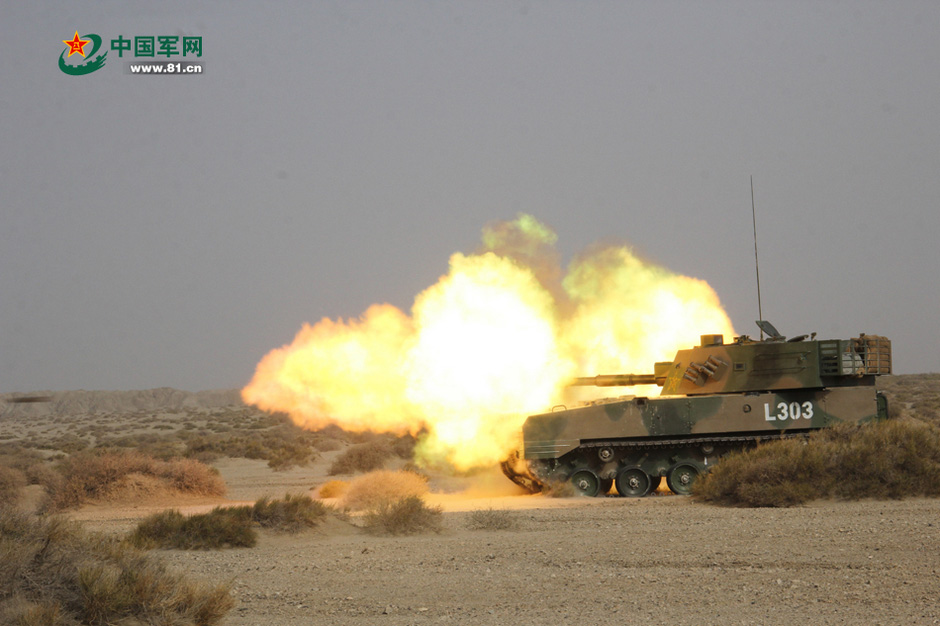 An artillery regiment of Xinjiang Military Region conducts a live-fire tactical drill in the desert on Sept. 26, 2014. (www.81.cn/Wang Xuezhen and Cheng Qizhang)