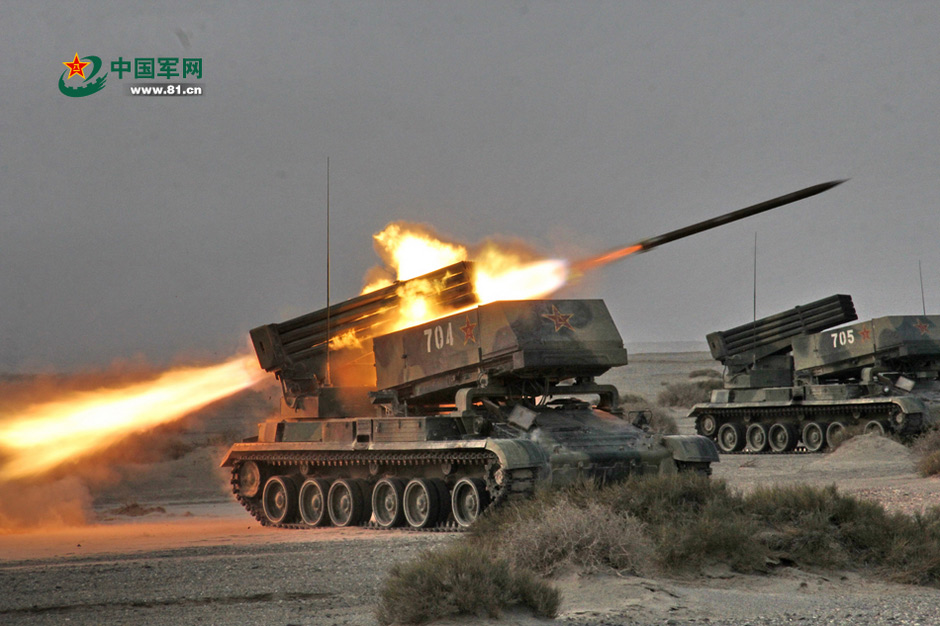 An artillery regiment of Xinjiang Military Region conducts a live-fire tactical drill in the desert on Sept. 26, 2014. (www.81.cn/Wang Xuezhen and Cheng Qizhang)