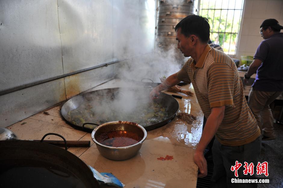Their friends in the village help cooking. (Chinanews/Ren Dong)