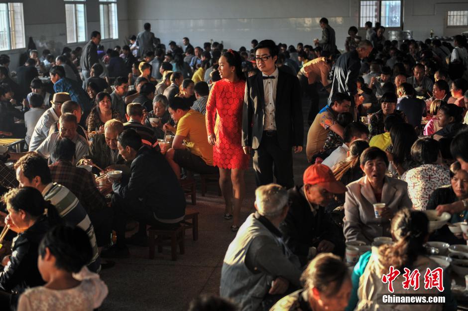 A traditional wedding was held in Zhangbu Village, Yiliang County, Yunnan, Oct. 6, 2014. Both the bride and the groom work in Kunming, and they decided to go back to their hometown to have a traditional wedding. According to traditional custom of rural areas in Yunanna, they invited everyone in the village to the wedding. For those who live in cities, a special traditional wedding like this is very unique.