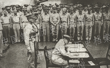General of the Army Douglas MacArthur signed the instrument of surrender on Sept.2, 1945. (Photo/Second Historical Archives of China)