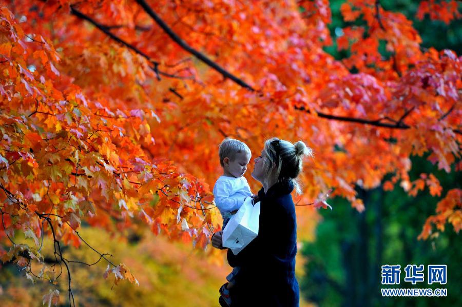 A mother and her child play at the Central Park in New York, United States. (Xinhua/Wang Lei)