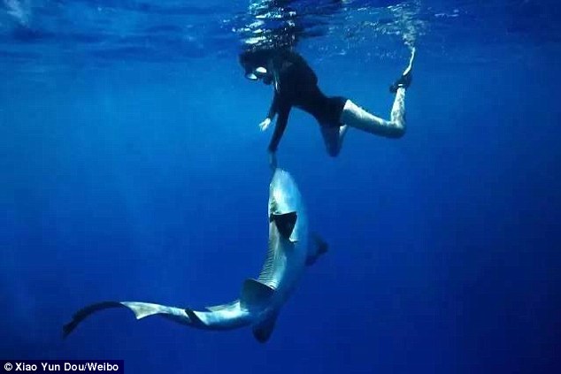 A Chinese photographer who goes diving with sharks and sleeping with polar bears has become an internet sensation for her adventurous lifestyle.