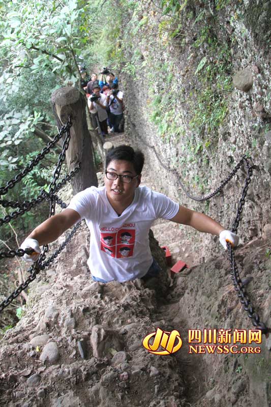 Amputee reaches top of Jianmenguan with hands