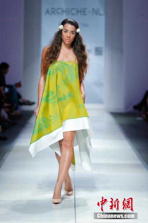 Led by a fashion brand promotion organization, independent designers from China's Shenzhen attract local residents with their fashionable clothes at a fashion show held in Portland, the largest city in the U.S. state of Oregon on the night of Oct. 8, 2014. (CNS/Li Tao)