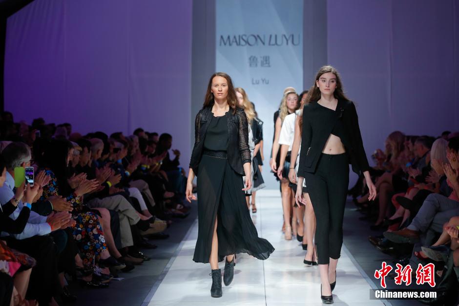 Led by a fashion brand promotion organization, independent designers from China's Shenzhen attract local residents with their fashionable clothes at a fashion show held in Portland, the largest city in the U.S. state of Oregon on the night of Oct. 8, 2014. (CNS/Li Tao)