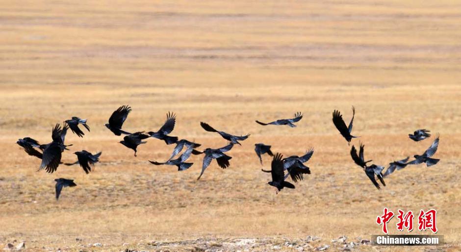 Rows of swans fly over the mountain area of Xinjiang. Swans began to fly away from Xinjiang as it gets colder in October. (Chinanews.com/Hu Re)