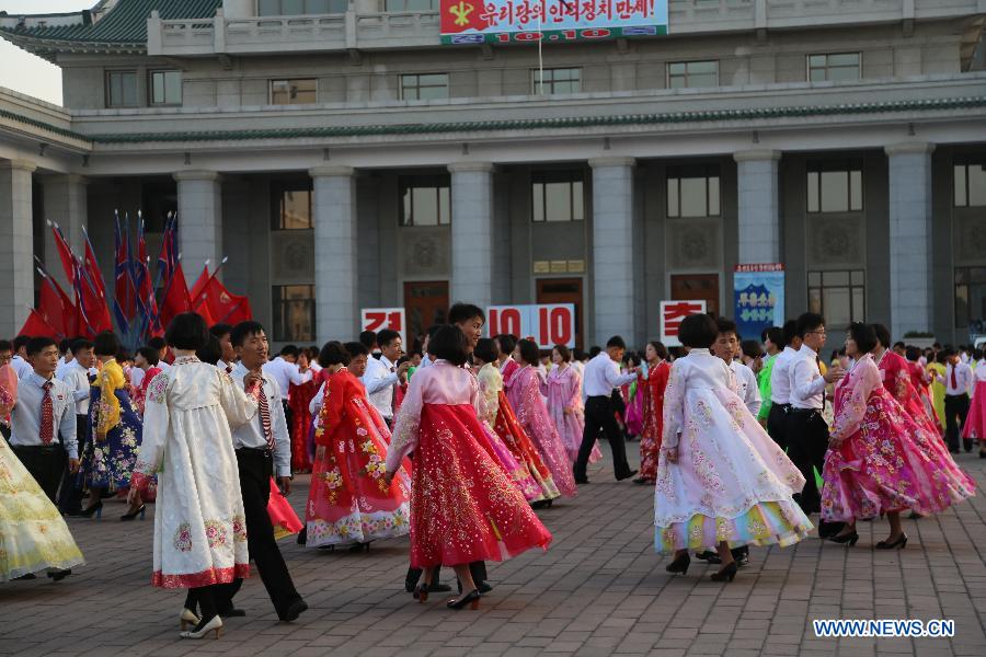 Students dance to celebrate the 69th anniversary of the ruling party's founding in Pyongyang, capital of the Democratic People's Republic of Korea (DPRK), Oct. 10, 2014. (Xinhua/Lu Rui)