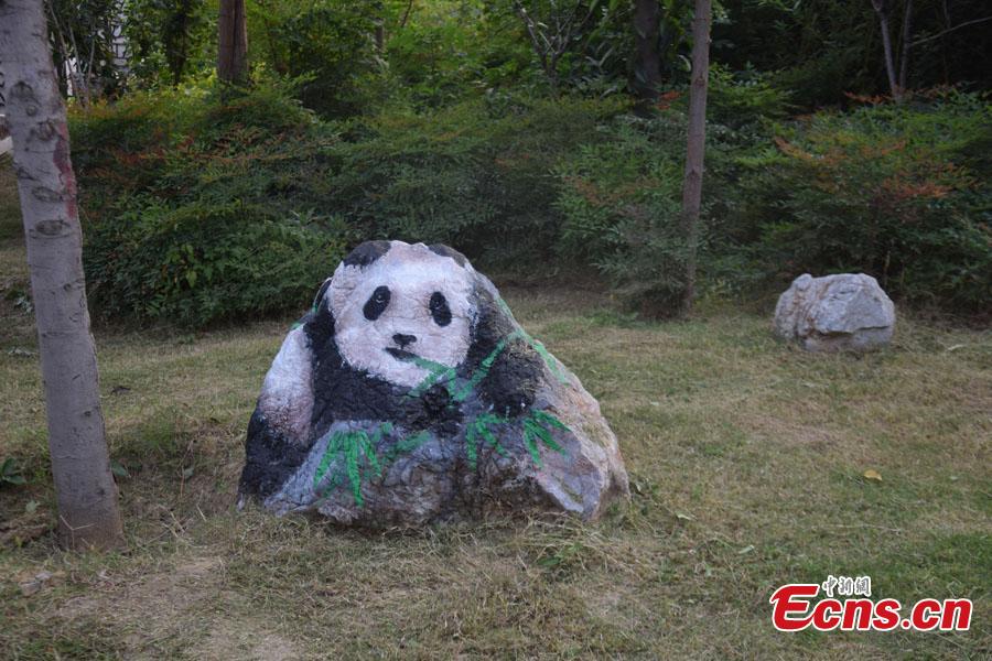 An artist has recently turned plain old rocks into cute paintings in the Mei Cheng Park in Nanyang, China's Henan Province, attracting many tourists to visit the area. (Photo: China News Service/Han Zhangyun)