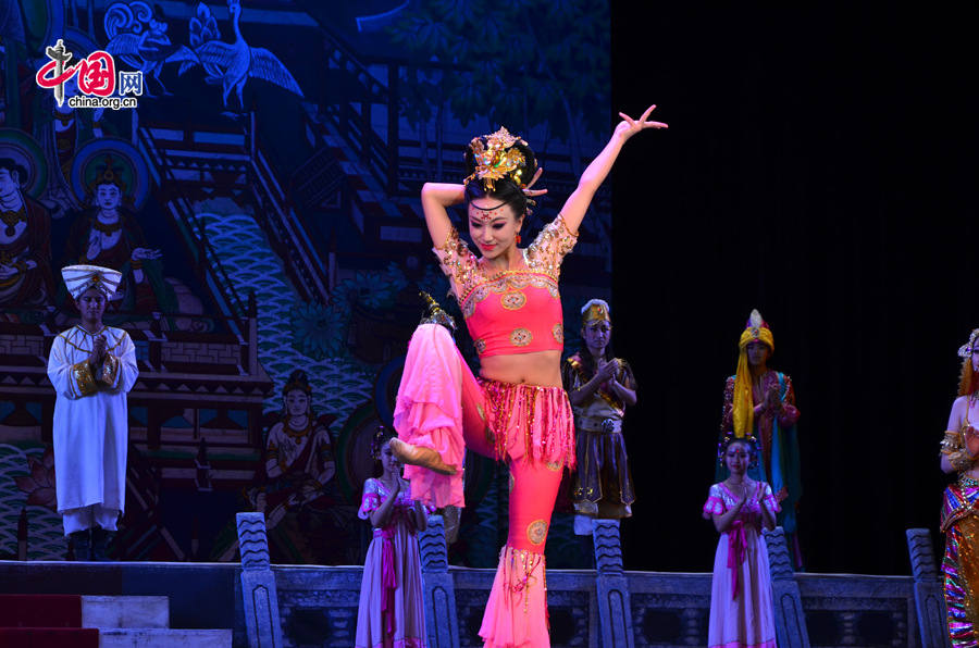 Artists perform the dance drama "Silk Road" in Lanzhou on Thursday, Oct. 9, 2014, as part of the activities marking the 3rd International Culture Industry Conference, which is being held in the city. [Photo by Su Yadong / China.org.cn]
