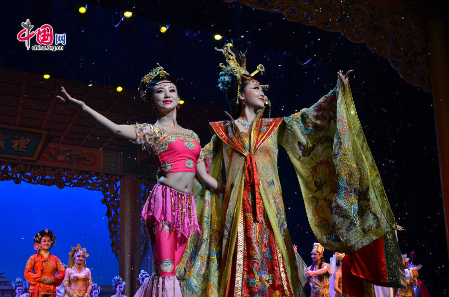 Artists perform the dance drama "Silk Road" in Lanzhou on Thursday, Oct. 9, 2014, as part of the activities marking the 3rd International Culture Industry Conference, which is being held in the city. [Photo by Su Yadong / China.org.cn]