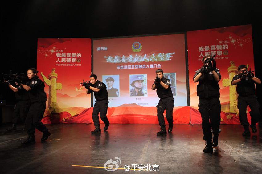Cao Zhigang, a candidate for the fifth "My favorite people's police officer" came to Beijing Film Academy on Oct. 9, 2014. Cao and his colleagues told college students their own crime-fighting stories, and performed a cool posing gun show.