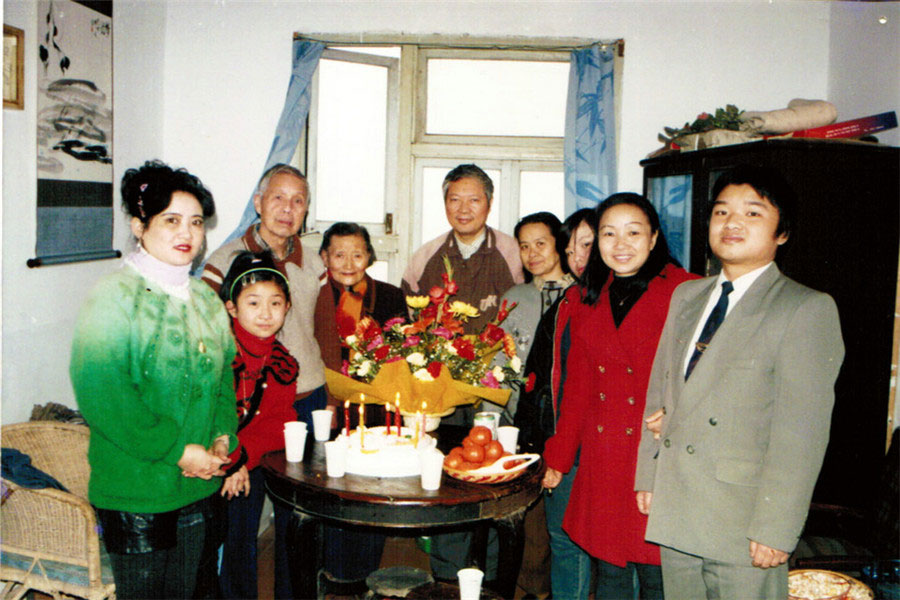 The nonagenarian old couple and their big family. (Photo/people.cntv.cn)