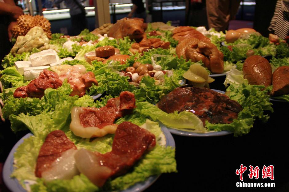 | A Chinese feast made from stone debuts in Xi’an, northwest China’s Shaanxi province on Oct. 10, 2014. The delicacies are so vivid that they would make one’s mouth water. The whole feast sells at 360,000 yuan. (Chinanews/Zhang Yicheng) |