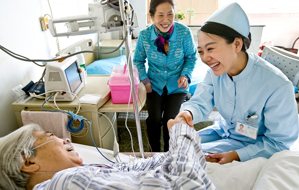 At work, Wang chats with patients, eases their emotions, and helps them to get confidence to defeat diseases. (CNTV/Wang Zhe)