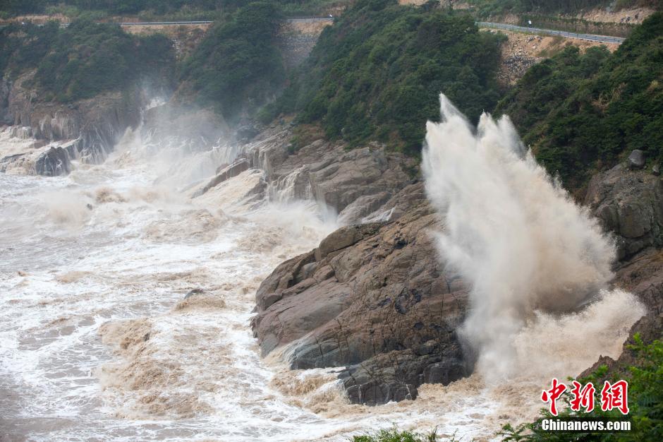 Photo shows the high waves caused by typhoon Vongfong off the coast of Zhoushan, east China's Zhejiang Province, Oct. 12, 2014. (Photo/CNS)