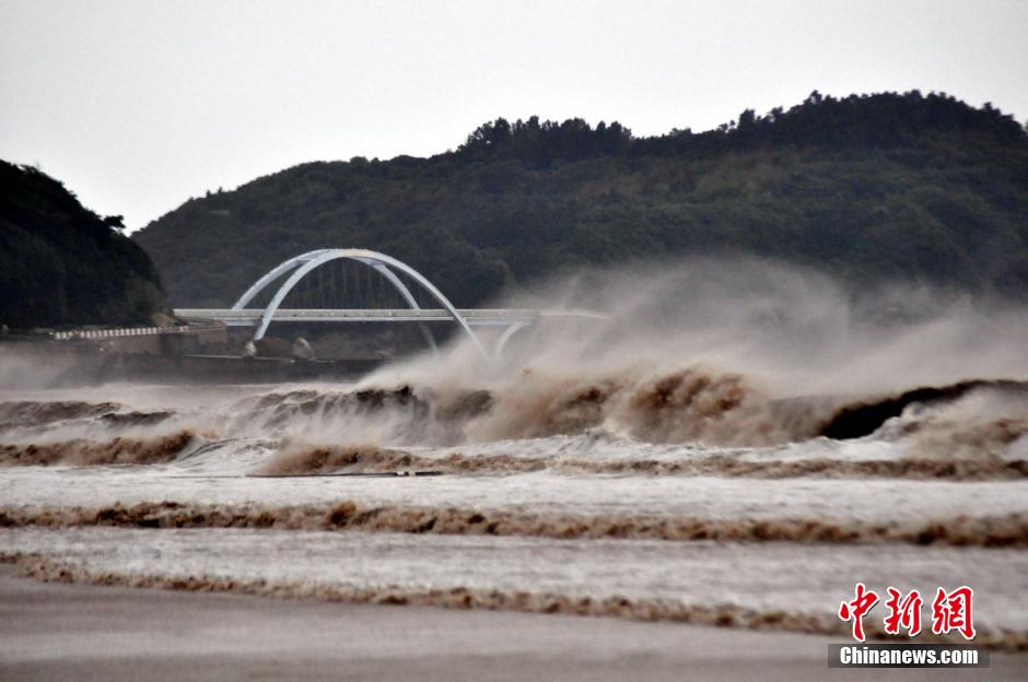 Photo shows the high waves caused by typhoon Vongfong off the coast of Zhoushan, east China's Zhejiang Province, Oct. 12, 2014. (Photo/CNS)