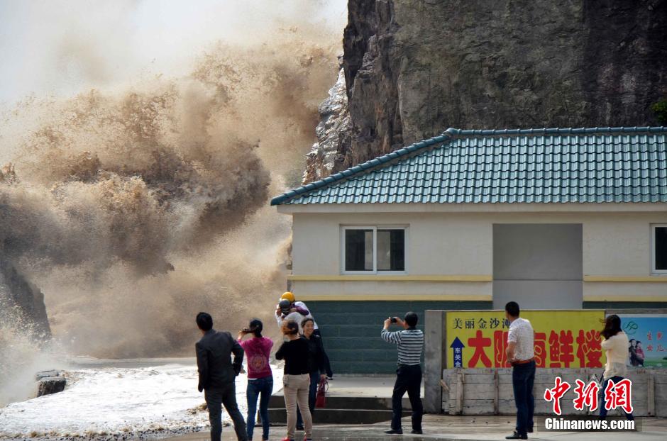 Photo shows high waves in Shitang Township, Wenling, east China's Zhejiang Province, Oct. 12, 2014. Affected by the powerful typhoon Vongfong, high waves were seen off the coast of provinces like Zhejiang and Fujian. (Photo/CNS)