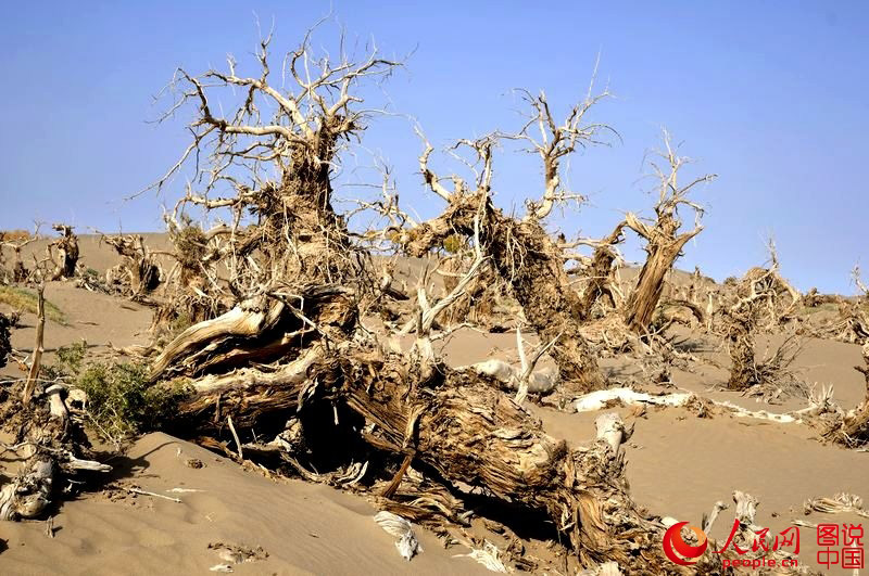 The dead forest is located in Ejin Banner, north China’s of Inner Mongolia Autonomous Region. It used to be a thick populus euphratica forest. Because of rivers diversion in history, the trees died of drought. The grotesque dead trees present a mysterious and wild scene. It is often called “the odd forest” by tourists. (Photo source: people.cn)