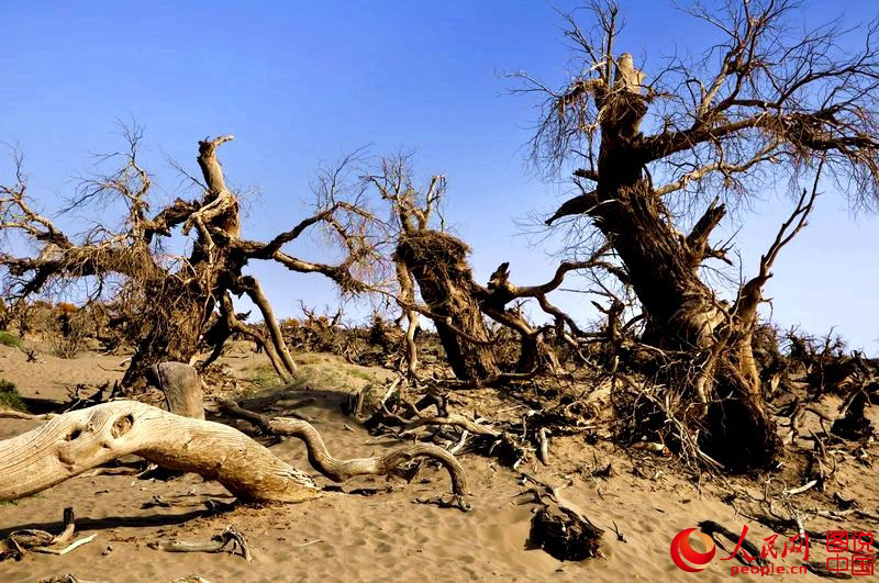 The dead forest is located in Ejin Banner, north China’s of Inner Mongolia Autonomous Region. It used to be a thick populus euphratica forest. Because of rivers diversion in history, the trees died of drought. The grotesque dead trees present a mysterious and wild scene. It is often called “the odd forest” by tourists. (Photo source: people.cn)
