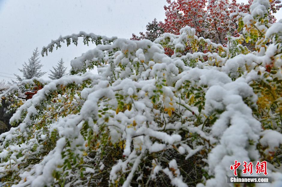 Heavy snow hit Balikun county in east Xinjiang from the evening of October 9 to the dawn of October 10. The sky became clear after snow and the lowest temperature reached minus 9 degrees Celsius. (Chinanews.com/Zhang Guojun)