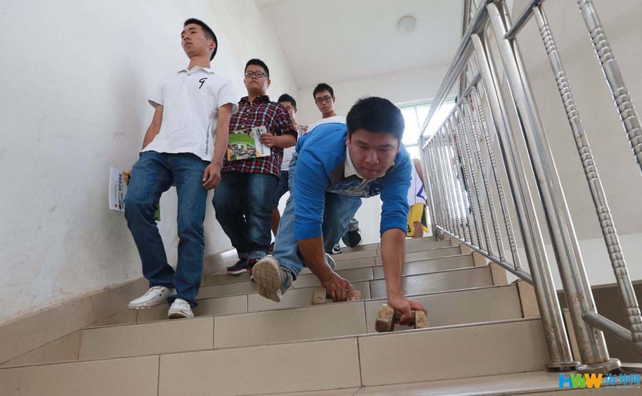 “My feet have shrunk, but that's not necessarily a bad thing. It has given me the incentive that inspires me to overcome every difficulty.” Xiaole says that one of the hardest things for him is to go down stairs - he needs to go down two steps at a time. “Because the distance between a single step is too short, it's hard for me to keep my balance. So I have to concentrate, and balance my body using my hands. When classmates call me, I don't dare answer - I have to concentrate on every step.” (Photo/Haiwainet)