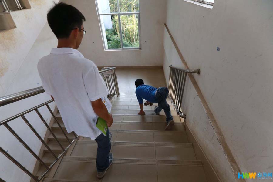 Facing so many difficulties, Xiaole is always thinking of ways to overcome his problems. "It's not that we take care of Xiaole," say his classmates. "He's the one who inspires us. There's never an obstacle he can't overcome. There's never a time when he's not pushing himself beyond his limits.” (Photo/Haiwainet)